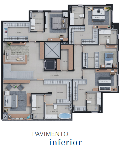 Excelente apartamento duplex na cobertura em lançamento no Edifício Cidade de Zurique, com 483 m2 de área útil, 5 suítes, sala 2 ambientes, varanda gourmet ampliada e com jacuzzi, cozinha espaçosa, área de serviço e com 6 vagas na garagem.