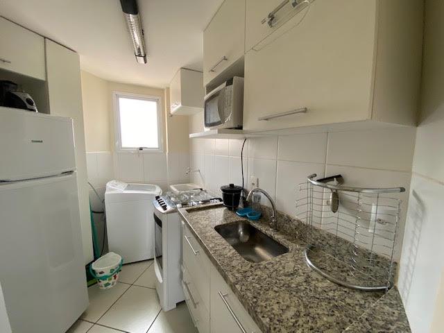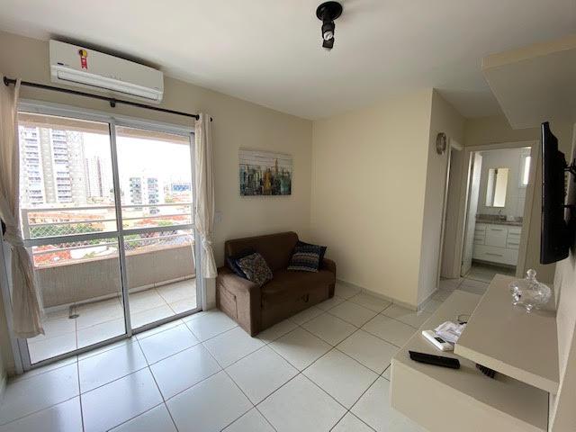 Excelente apartamento no Edifício Bilbao, com 41 m2 de área útil, 1 dormitório, sala 2 ambientes, cozinha, banheiro, completo de armários, mobiliado com todos itens de eletros/eletrônicos, com 2 ar condicionado split, varanda com vista permanente livre, 1 vaga na garagem, condomínio com área de lazer e portaria.