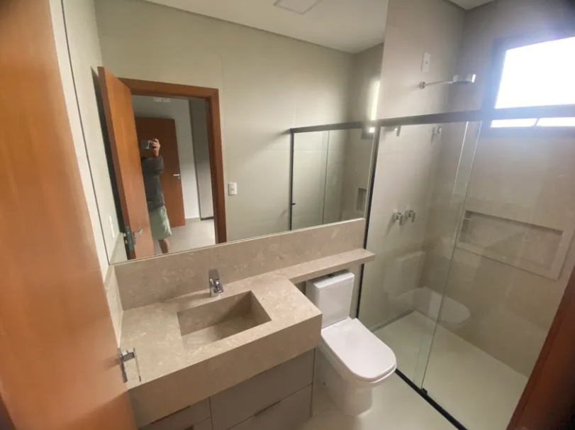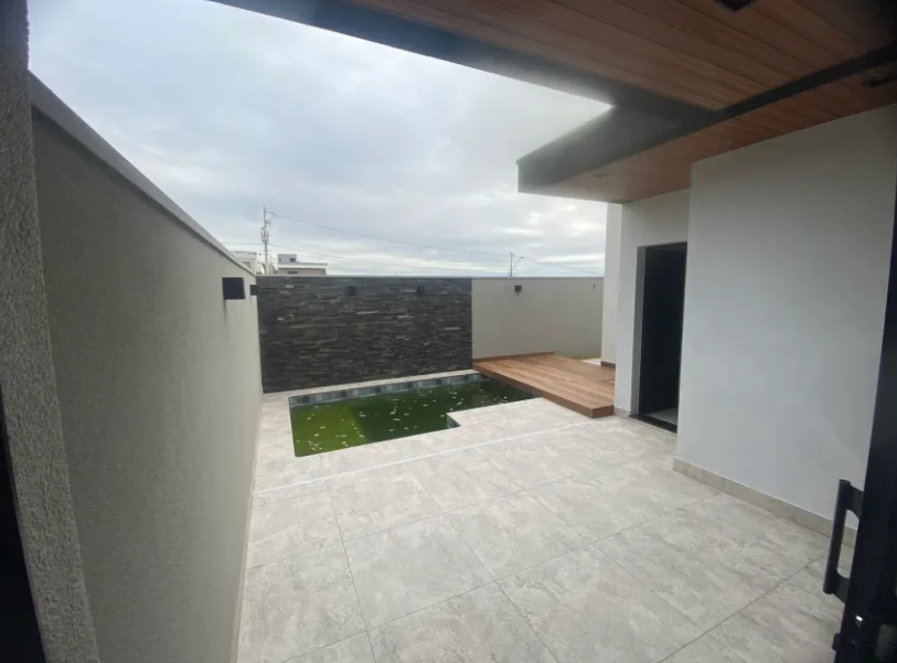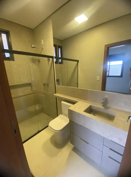 Excelente casa no Cond Quinta da Mata 1, com 250 m2 de terreno e 172 m2 de área construída, tendo 3 suítes, a master com closet, sala 2 ambientes com é direito alto, cozinha gourmet integrada, lavanderia, lavabo, vestiário e área gourmet com piscina e churrasqueira.