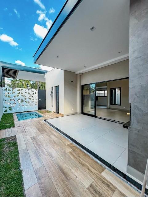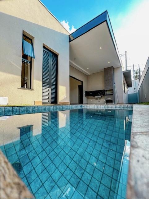Excelente casa no Cond Aurora Village, com 390,62 m2 de terreno e 186,23 m2 de área construída, tendo 3 suítes, lavabo, sala ampla com pé direito alto, cozinha gourmet com cooktop e coifa, lavanderia e varanda gourmet com piscina com hidro.
