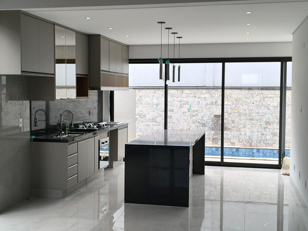 Com um acabamento de alto padrão e um pé direito elevado.