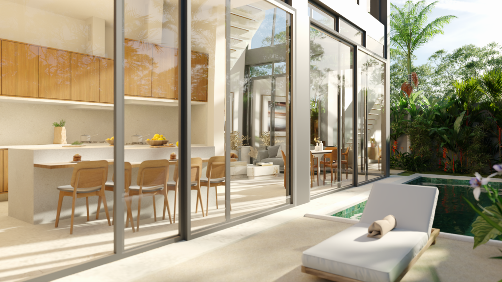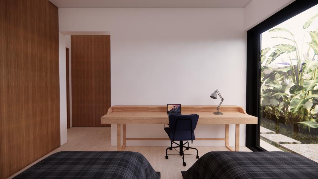 Com pé direito alto, completo em armários e paisagismo.